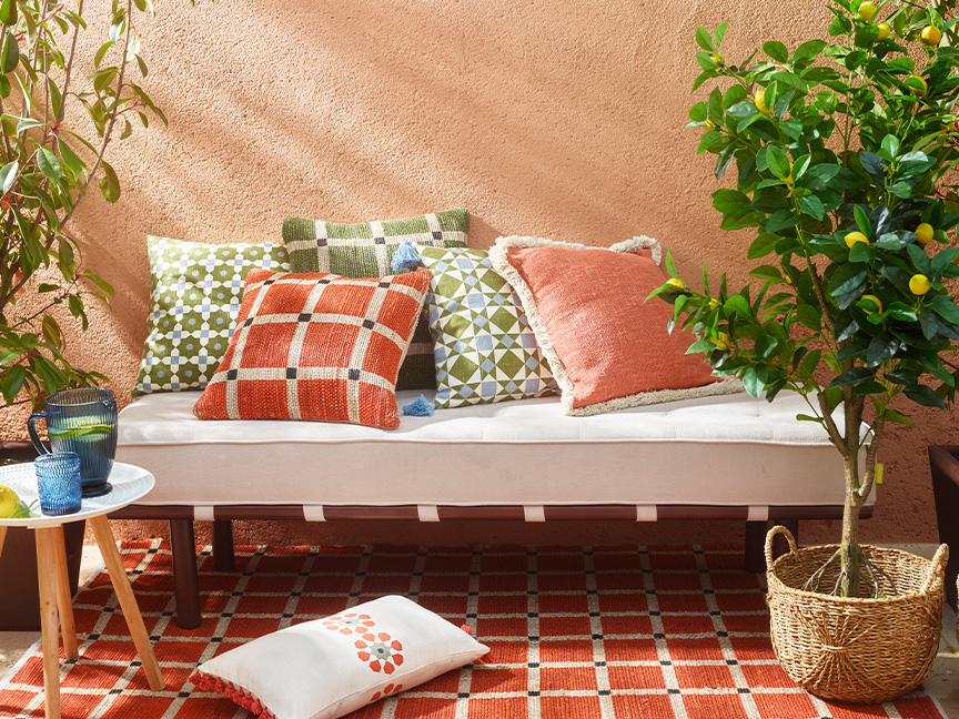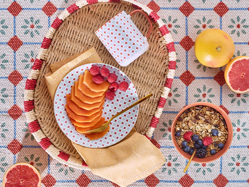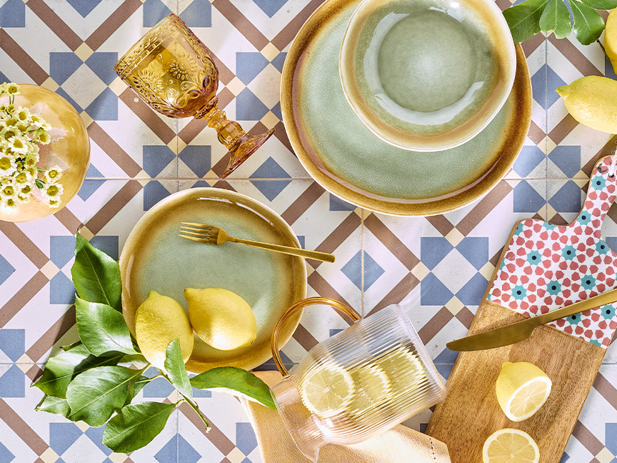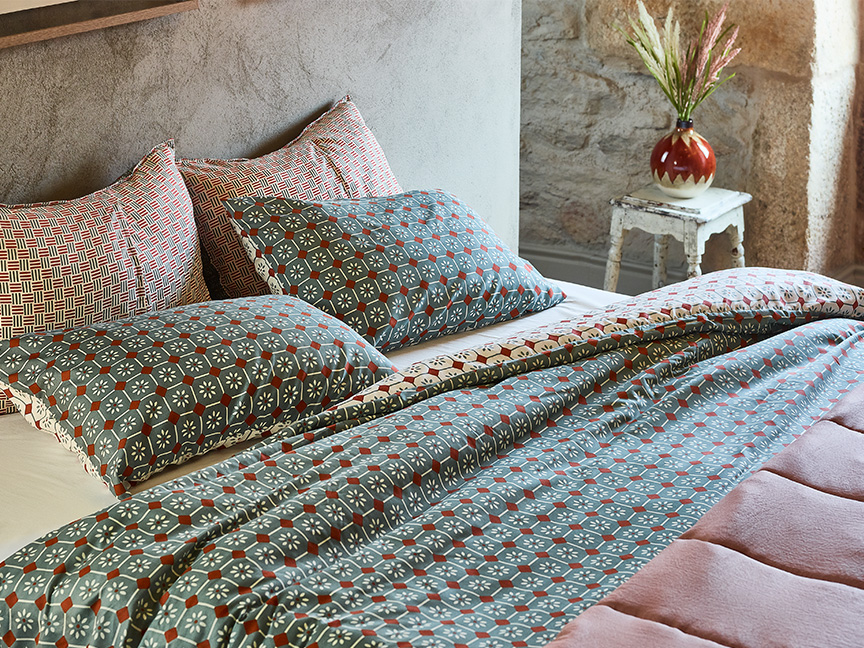 Esta coleção celebra a herança cultural portuguesa, combinando o rigor geométrico dos azulejos com a suavidade dos elementos árabes. As cores empoeiradas, entre terracotas e azuis, criam um ambiente acolhedor e vibrante.