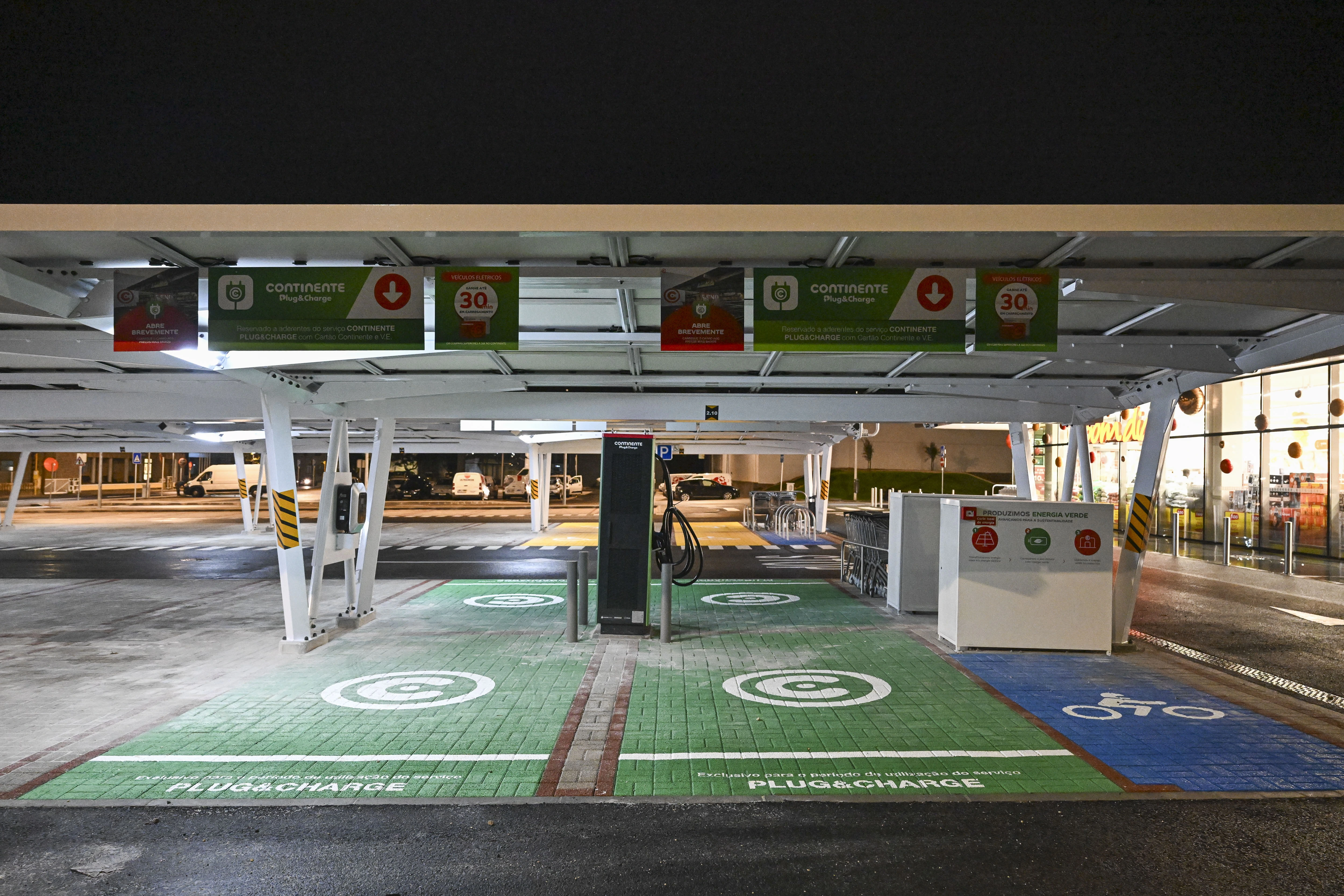 Esta loja Continente disponibiliza um parque de estacionamento a todos os seus clientes com lugares destinados a pessoas com mobilidade condicionada e lugares reservados para famílias.