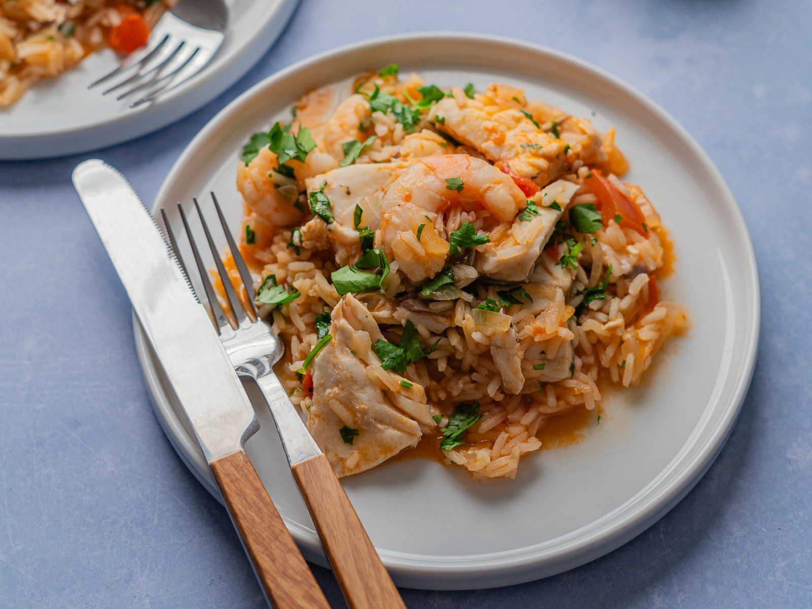 Sirva o arroz malandro de robalo e coentros de imediato.