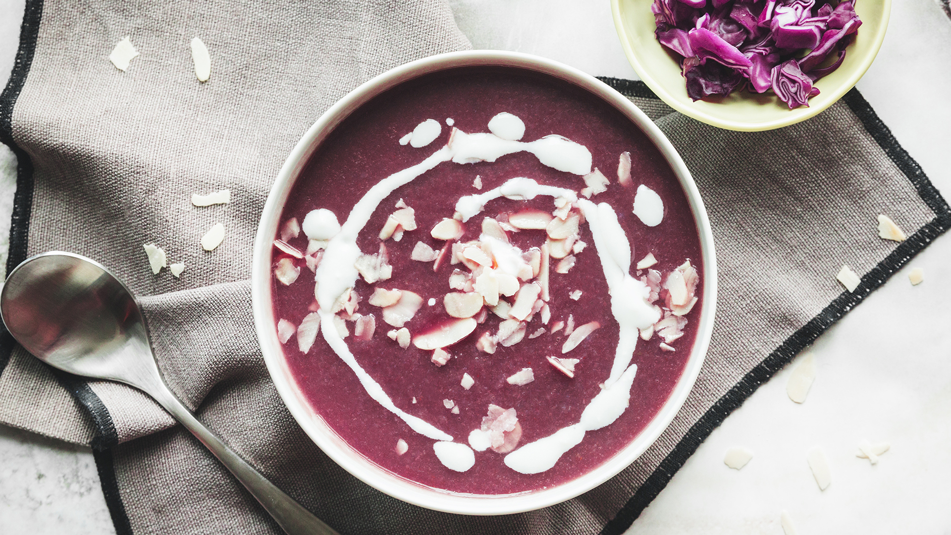 Para servir, corte o pedaço reservado de pepino e pimento vermelho em pequenos cubos e polvilhe sobre a sopa. Guarneça com folhas de manjericão e orégãos a gosto.