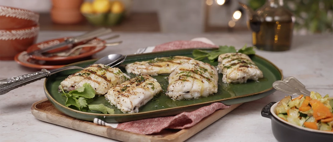 1. Tempere as postas de peixe com sal e borrife com umas gotas de óleo, colocando-as de seguida na grelha;