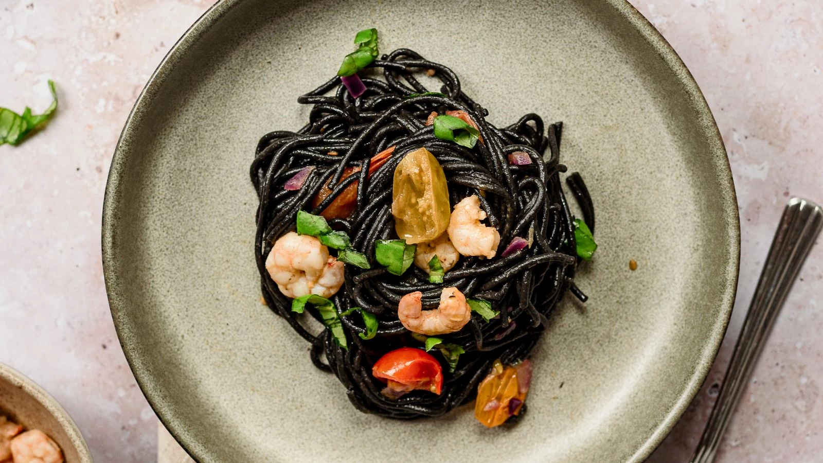 Esta receita de esparguete nero com camarão é ideal para quem procura um prato de marisco saboroso, rápido e fácil de preparar. Não desperdice as cascas do camarão: triture-as e aproveite-as para fazer um caldo. Passe o caldo por um coador e incorpore-o na cozedura da massa, intensificando o sabor do mar. Para um toque extra de sofisticação, envolva o esparguete num delicioso molho de açafrão, que adiciona um aroma irresistível ao prato.