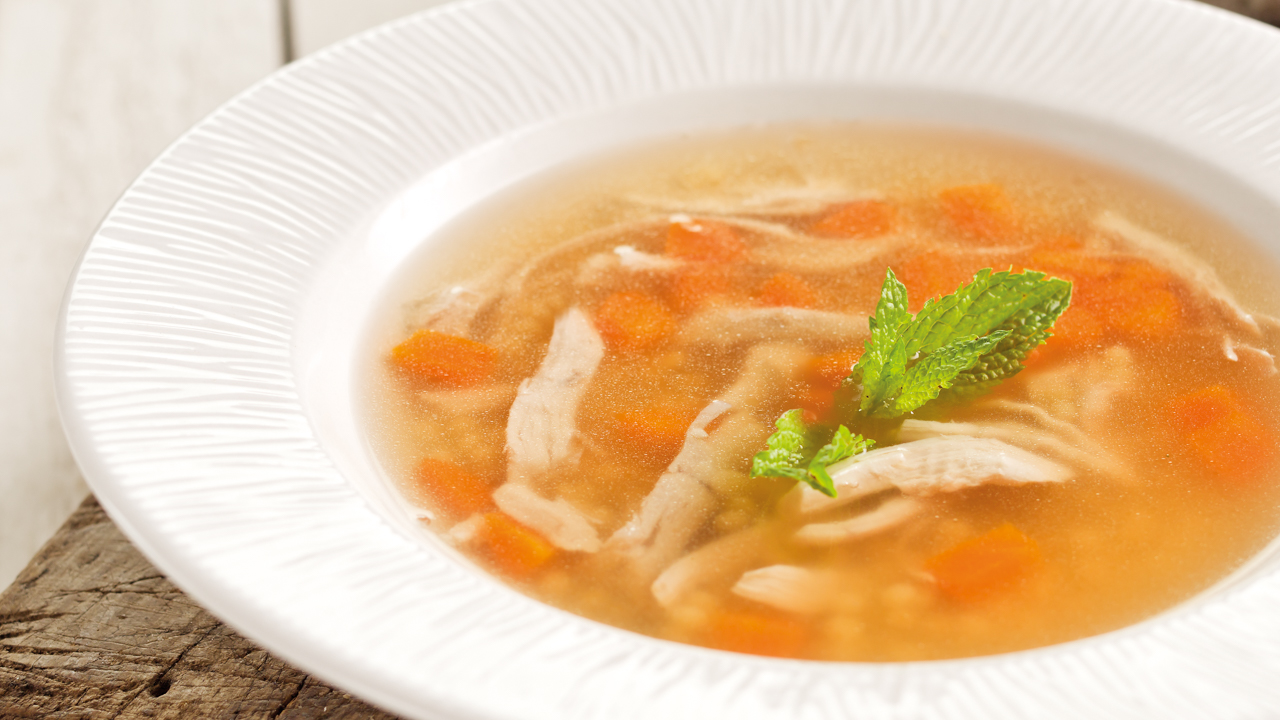 Sirva a sopa de castanha e decore com natas culinária e pimenta.