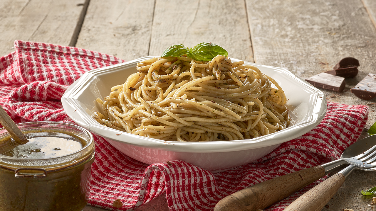 Coza a massa em água a ferver, com sal a gosto e um fio de azeite durante cerca de 5–8 minutos (o tempo altera consoante a espessura/tamanho da massa).