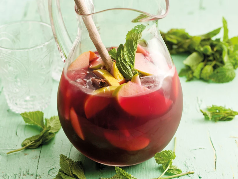 Para uma sangria ainda mais fresca, pode adicionar umas folhas de hotelã.