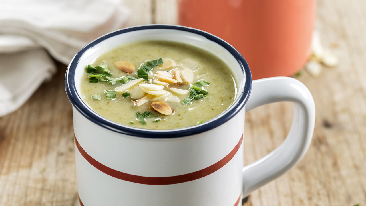 Sirva a sopa de castanha com cubinhos de presunto (opcional) e acompanhe com pão torrado.