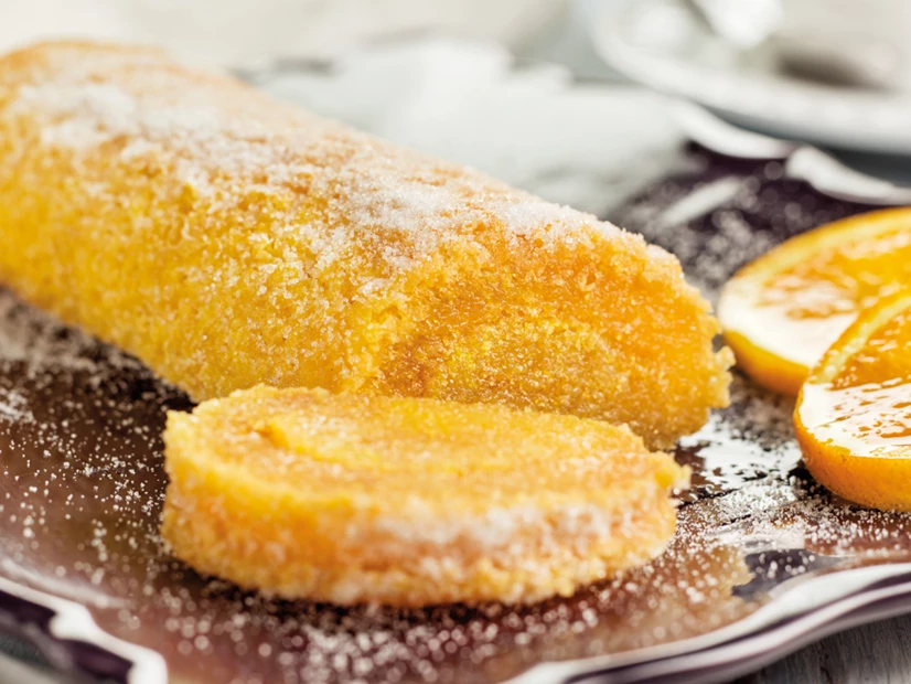 Desenforme, ainda quente, sobre uma folha de papel vegetal polvilhada com açúcar e enrole cuidadosamente.