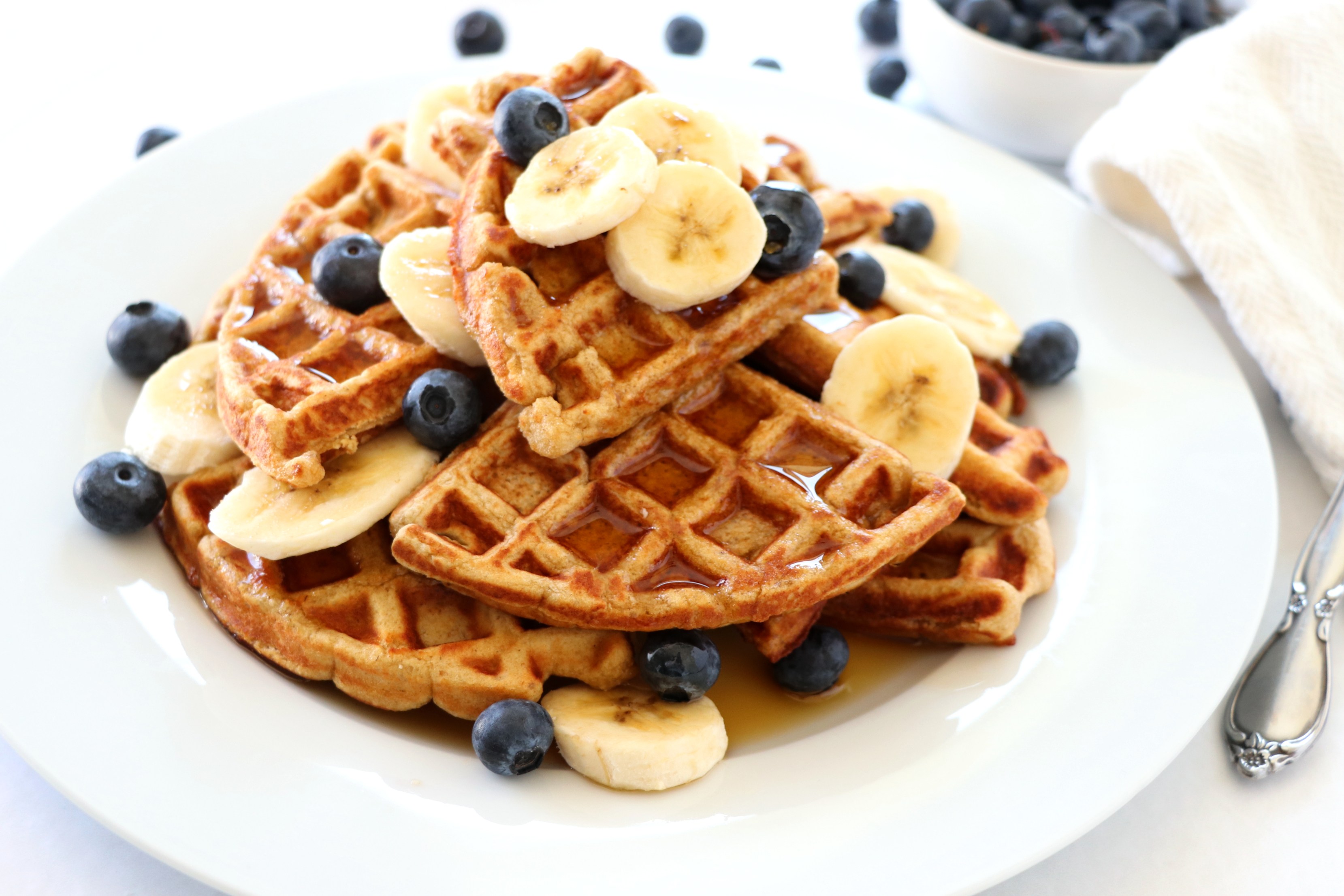 Distribua a massa por uma máquina de waffles, feche e aguarde até que esteja cozinhado.